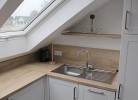 Neue Küche Geschirrspüler, Ceran-Kochfeld, Mikrowelle, Backofen, Kaffeemaschine, Wasserkocher und Toaster.